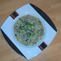 ein einfaches Rezept gibt´s heut´: typisch italienisch und jeder kennt es bestimmt: Risotto und zwar mit Pilzen, also Champignons. Ich habe ja immer gedacht, dass ein Risotto super schwer zu kochen geht und man Weißwein und wer weiß was braucht, aber das stimmt gar nicht. Seht selbst :) :