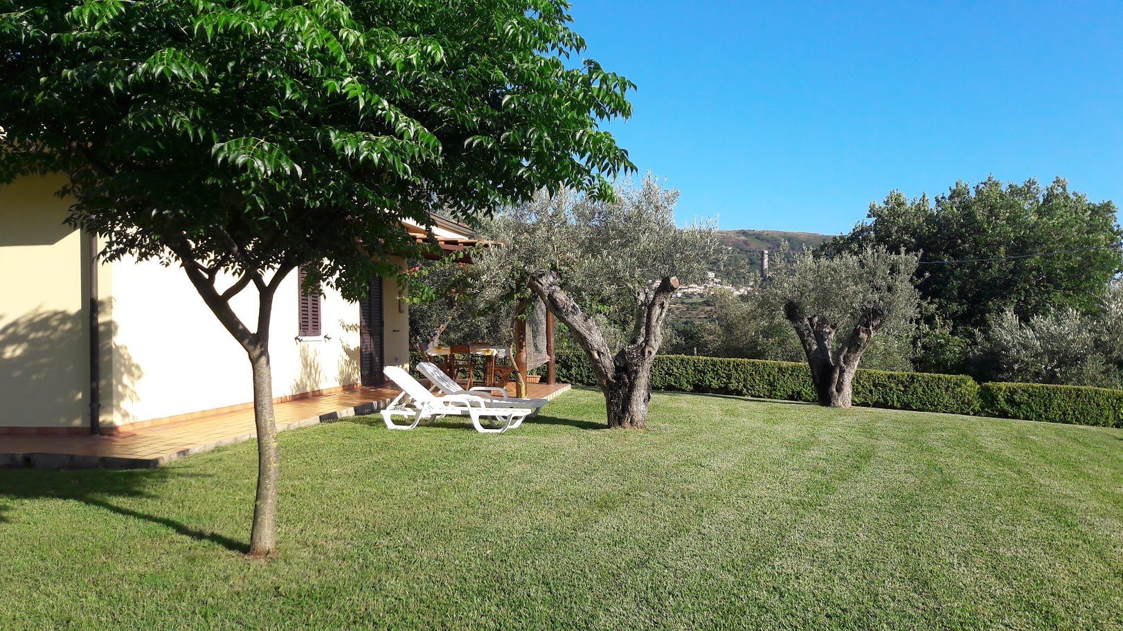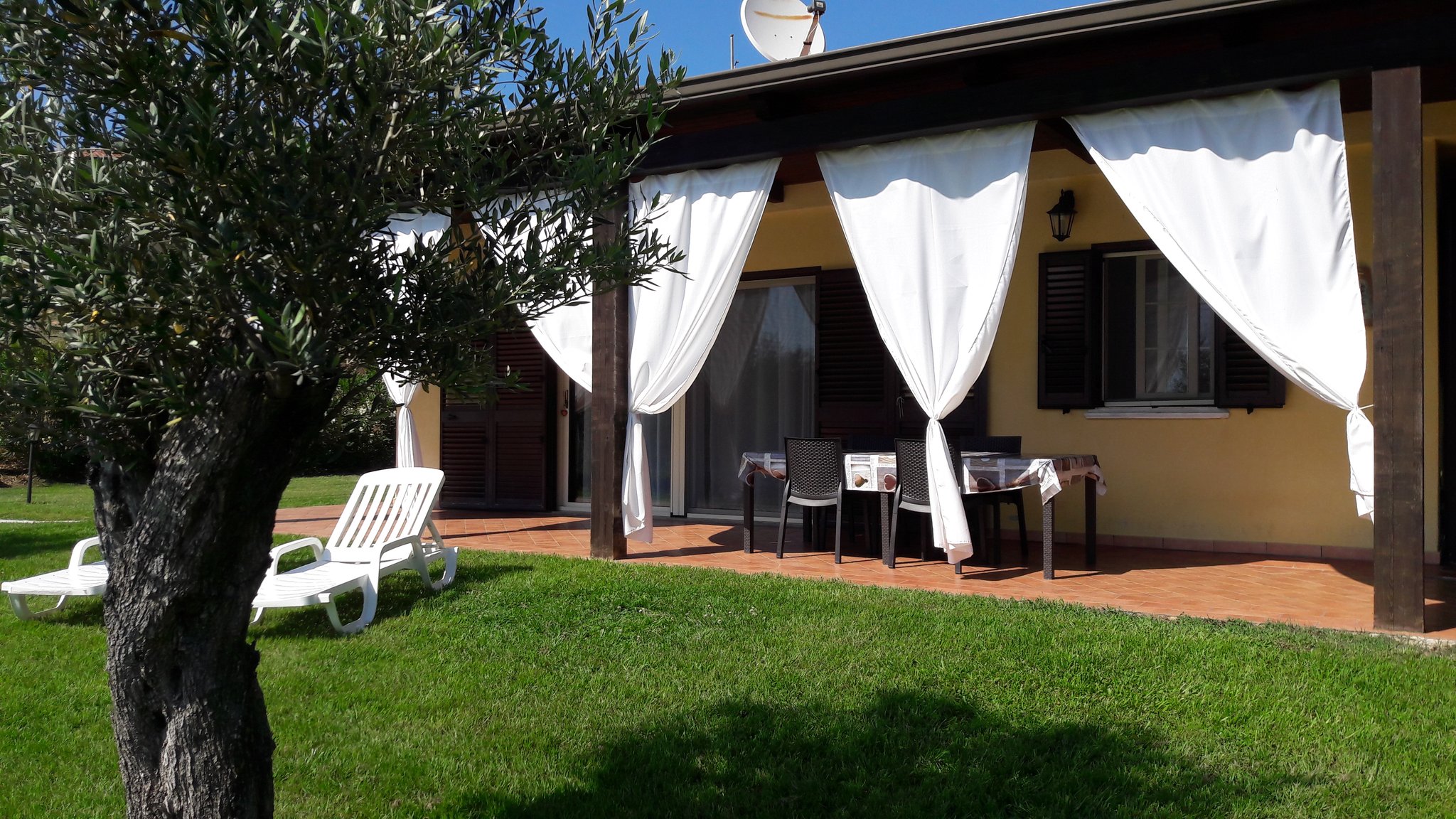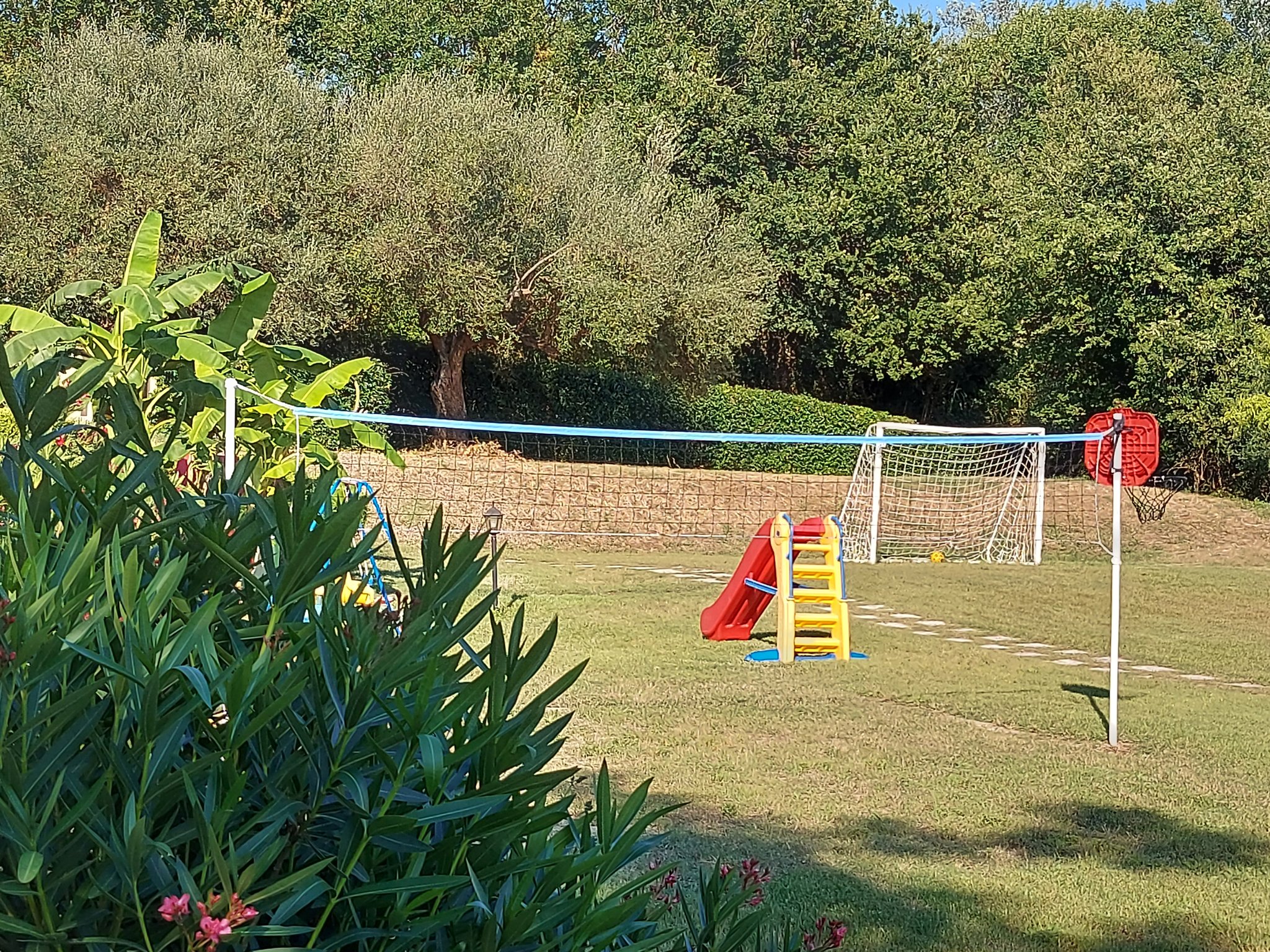 Auf einem schönen großen Grundstück mitten im Grünen kann man in aller Ruhe den Urlaub genießen und entspannen. Zur Verfügung stehen entweder zwei Apartments mit jeweils einem Schlafzimmer für maximal 4 Personen oder ein Ferienhaus mit zwei Schlafzimmern für maximal sechs Personen. Nicht zu vergessen ist der kleine Pool, der zwar gemeinschaftlich genutzt wird, für eine spritzige Erfrischung jedoch gut geeignet ist.