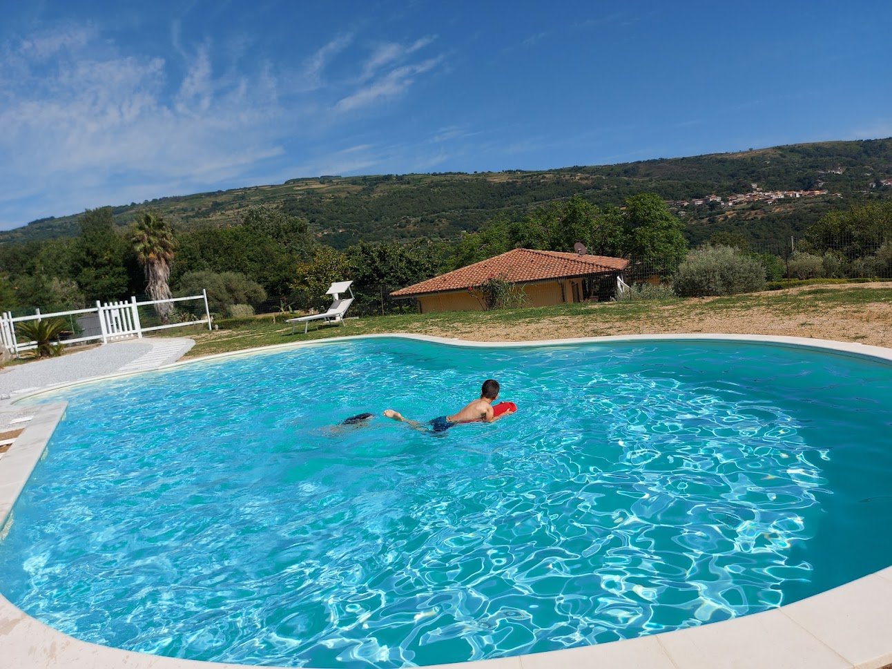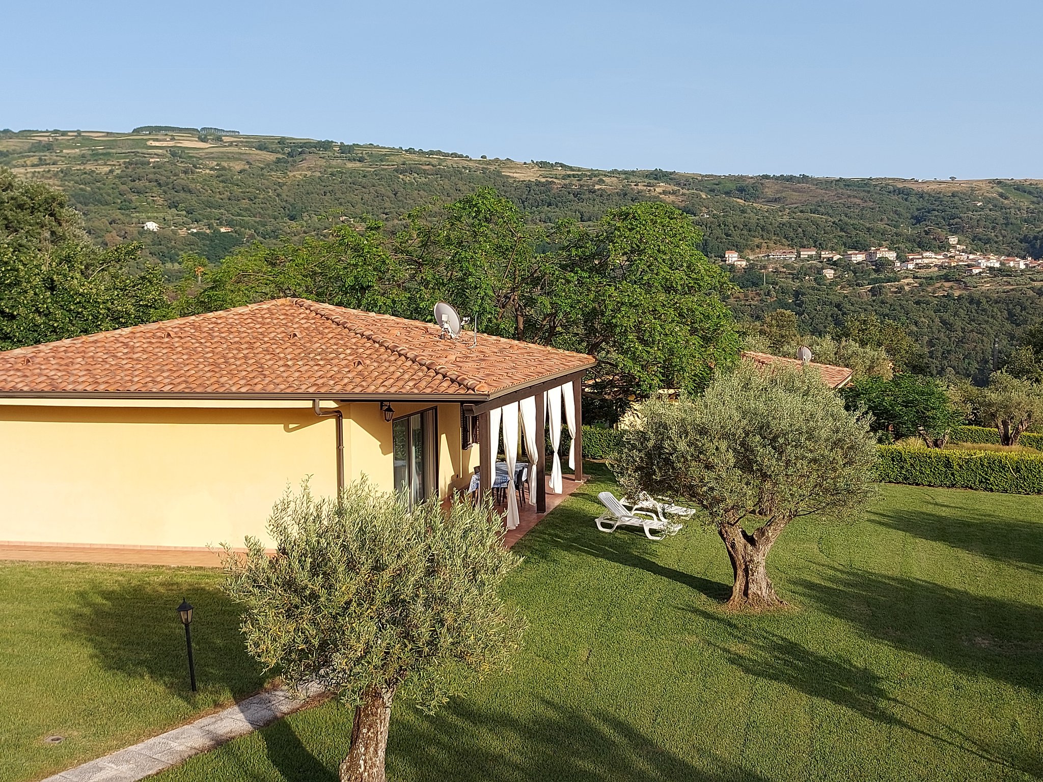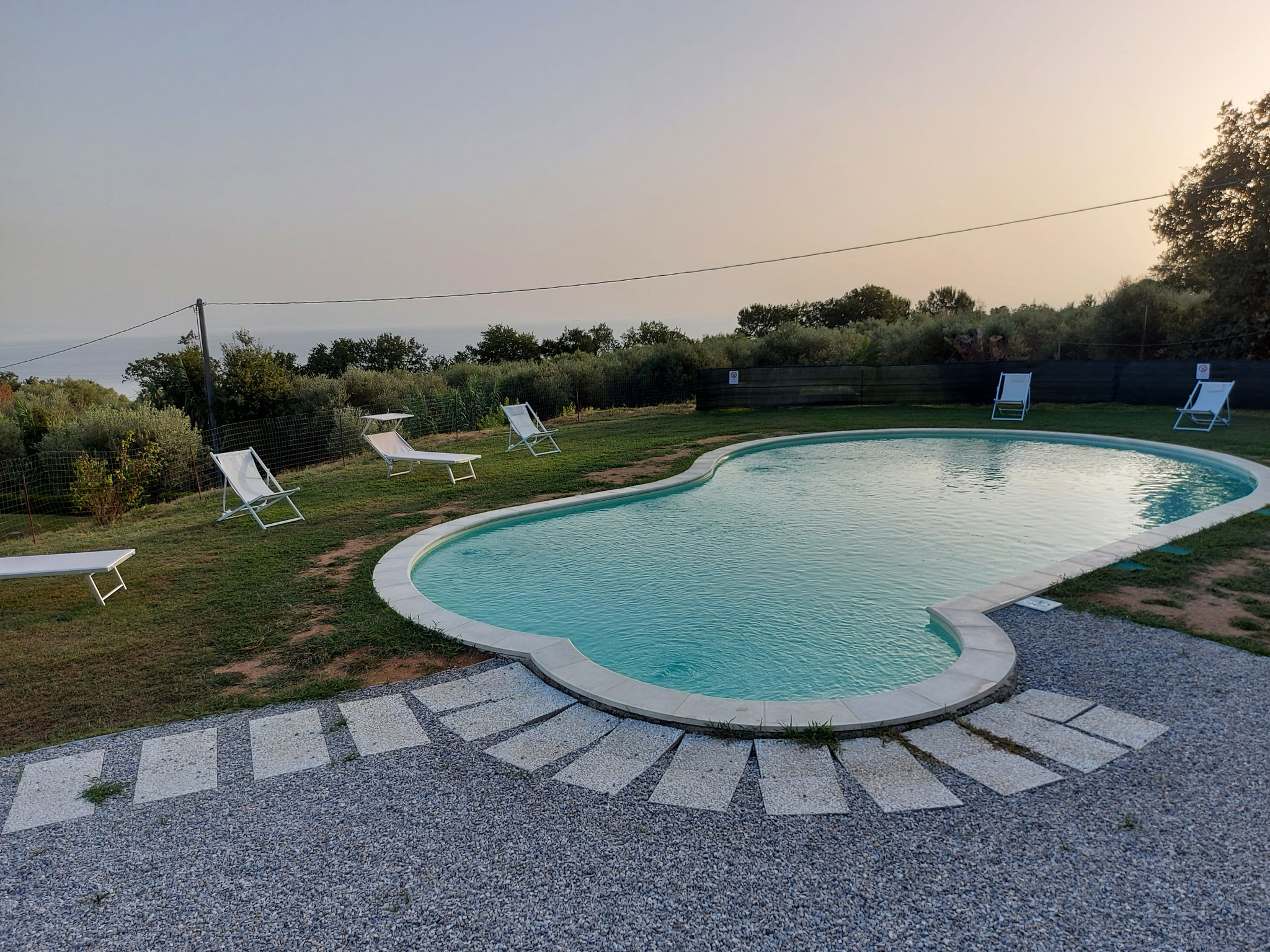 Auf einem schönen großen Grundstück mitten im Grünen kann man in aller Ruhe den Urlaub genießen und entspannen. Zur Verfügung stehen entweder zwei Apartments mit jeweils einem Schlafzimmer für maximal 4 Personen oder ein Ferienhaus mit zwei Schlafzimmern für maximal sechs Personen. Nicht zu vergessen ist der kleine Pool, der zwar gemeinschaftlich genutzt wird, für eine spritzige Erfrischung jedoch gut geeignet ist.