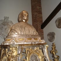 Der Heilige Bruno wurde um 1030 in Köln geboren. Nachdem er in Köln und Reims Theologie und Philosophie studiert hatte, wurde er 1056 Direktor der Domschule in Reims. 1080 trat er ins das Benediktiner – Kloster in Molesme ein. Vier Jahre später bat er darum eine Einsiedelei zu errichten und es wurde ihm bewilligt. Bald schlossen sich ihm jedoch noch andere Eremiten an und der zur Verfügung stehende Platz reichte nicht mehr aus. Aus diesem Grund bekamen Bruno und seine sechs Gefährten vom Bischof Hugo de Grenoble ein größeres Areal im Chartreuse – Gebirge und die Große Kartause entstand. Im Jahre 1090 wurde Bruno vom Papst Urban II. als dessen Berater nach Rom gerufen. Auf das Angebot als Berater angestellt zu sein und auch auf das Bistum Reggio verzichtete er, stattdessen gründete er ein zweites Kloster in Kalabrien und das war das Santo Stefano, was noch heute existiert. Am 6. Oktober 1101 starb Bruno und im Jahre 1514 wurde er von Papst Leo heilig gesprochen.