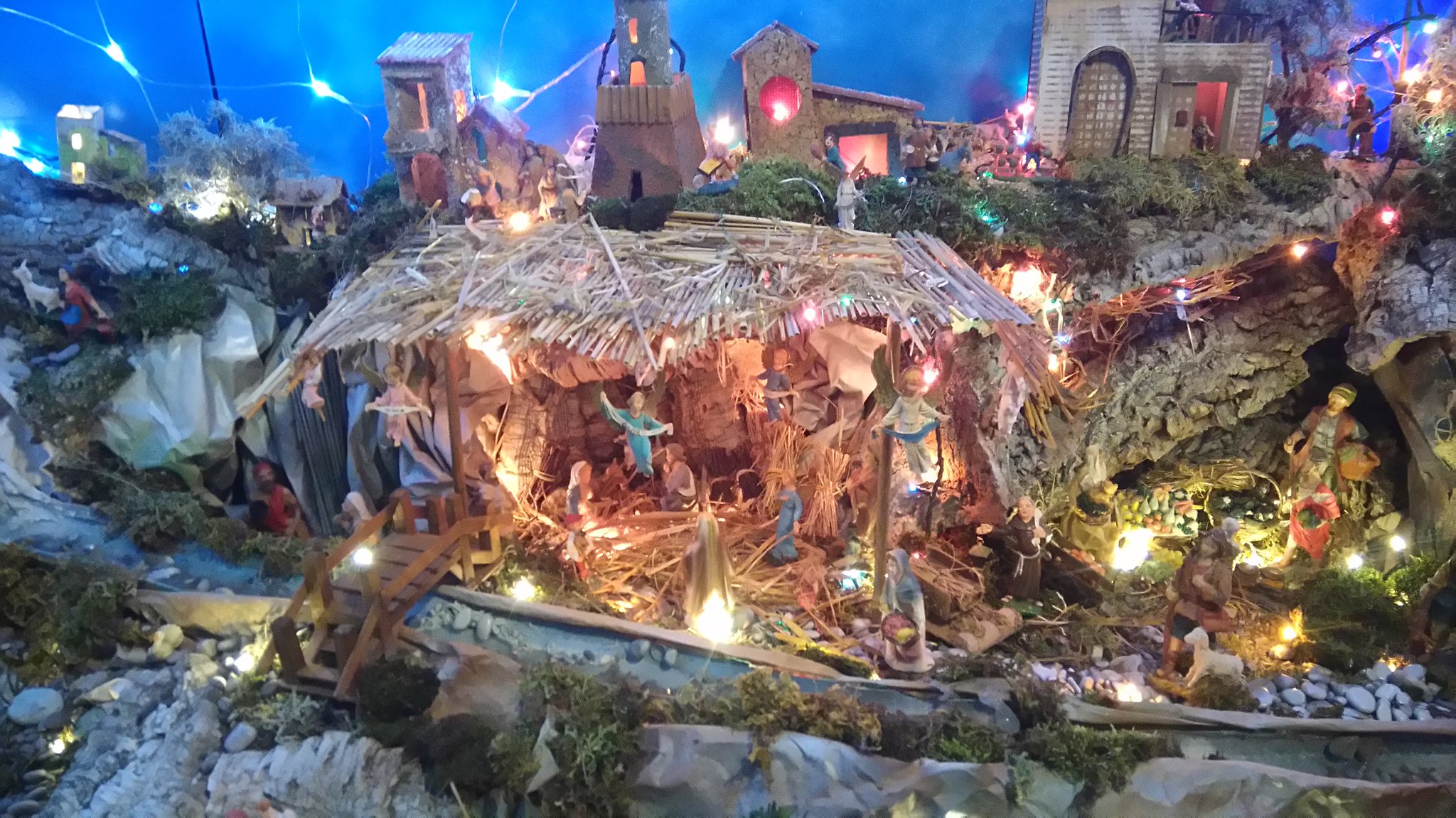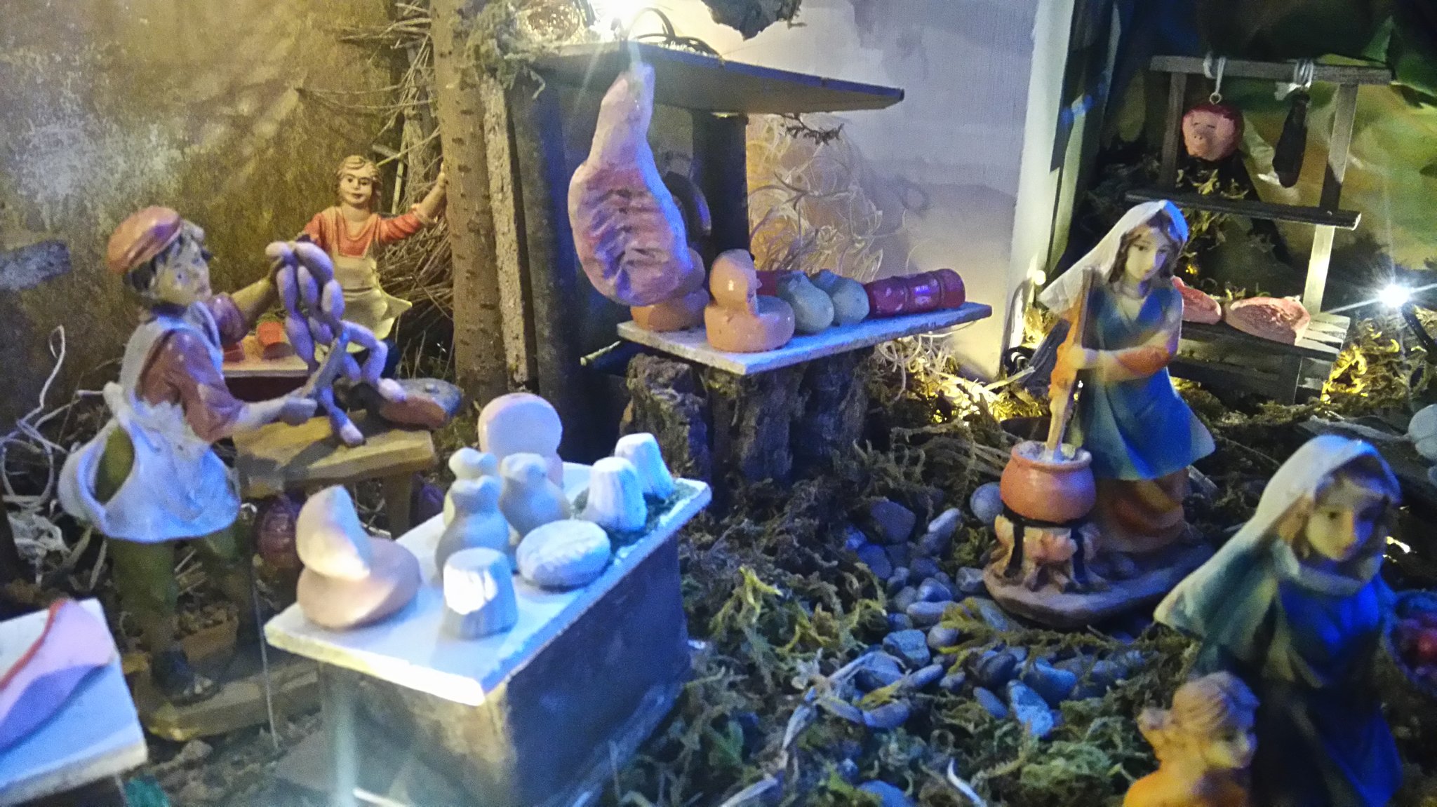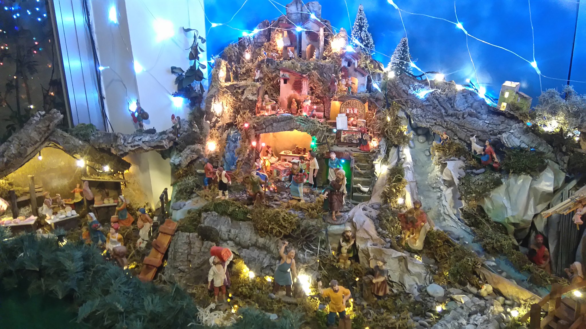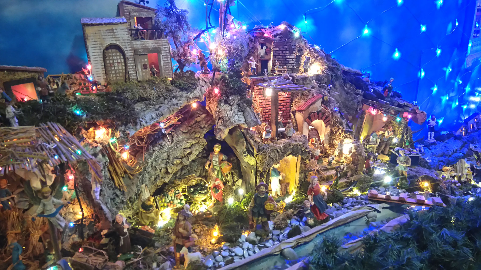 Unser Nachbar Emanuele hat bei sich zu Hause eine Weihnachtskrippe aufgebaut, allerdings in einem größeren Ausmaß als normal: Drumherum hat er eine richtige Landschaft entstehen lassen mit vielen verschiedenen Menschen (Figuren). Bei genauerem Hinsehen entdeckt man unglaublich viele Details!