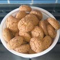 Die Mandeln mit dem Zucker in der Küchenmaschine zerkleinern (oder schon gehackte bzw. gemahlene Mandeln kaufen, in diesem Fall würde ich das Verhältnis 50:50 wählen), die Amarettini ebenfalls zerkleinern.