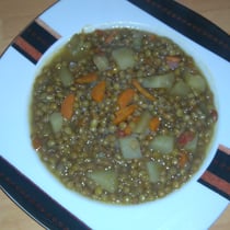 Wenn die Linsen weich sind, dann den Eintopf auf den Tellern verteilen :).