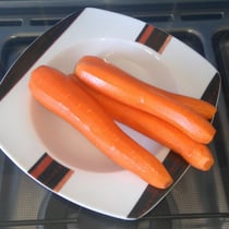 Die Zwiebeln klein hacken und in dem heißen Olivenöl etwas anschwitzen, anschließend die gewürfelten Kartoffeln hinzufügen und ebenfalls leicht anbraten. Mit den klein geschnittenen Tomaten "ablöschen" und anschließend die kleingehackten Karotten dazu geben.