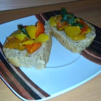 Paprika auf diese Weise zubereitet schmeckt super lecker auf´s Brot oder auch zu einem Stück Fleisch oder zu verschiedenen Hülsenfrüchten wie Kichererbsen oder Bohnen.