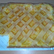 Ein Viertel des Teiges zur Seite legen, anschließend den Teig ausrollen und in eine gefettete Backform (28er oder 30er) drücken. Die Füllung hinzufügen und den Restteig ebenfalls ausrollen und in Streifen schneiden, welche dann im "quasi" Karomuster über die Füllung gelegt werden, die Zwischenräume sollten eine Raute darstellen.